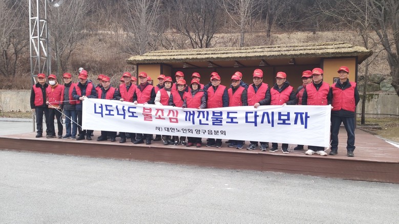 [양구군 세계타임즈=김민석 기자] 대한노인회 양구읍분회는 지난 2월 28일 봄철 산불 예방을 위한 발대식을 개최하고 입산 통제 및 주민 보호 등 산불 예방 활동에 적극적으로 참여하기로 했다.