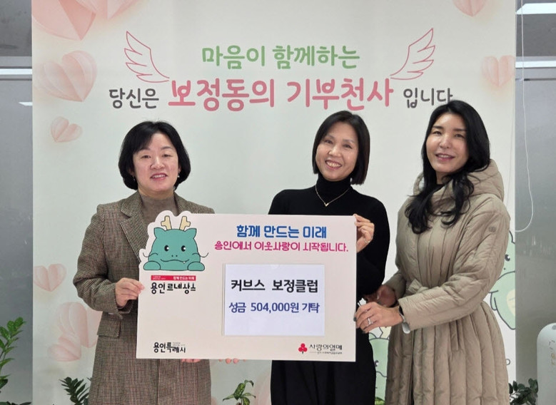 커브스 보정클럽(대표 박은경)은 지난 6일 보정동에 성금 50만 원을 전달했다. 커브스 보정클럽은 매년 ‘사랑의 열매’를 통해 나눔을 실천해 왔다. 커브스 보정클럽 관계자는 “회원들과 함께 나눔의 가치를 실천할 수 있어 뜻깊게 생각한다”며 “앞으로도 일회성에 그치지 않고 지역사회를 위한 기부와 나눔 활동을 꾸준히 이어가고 싶다”고 했다.