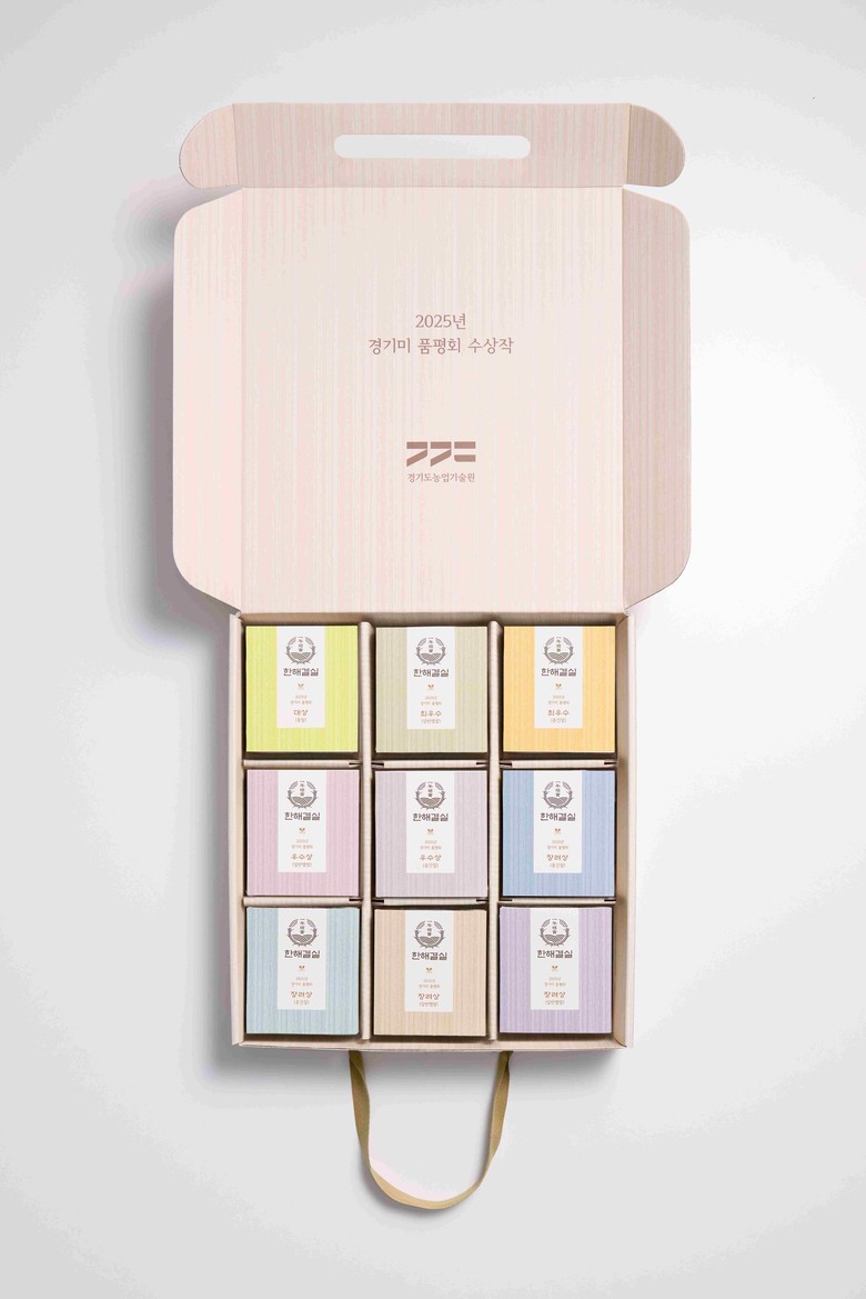 ‘한해결실’은 올 한 해 경기도에서 생산된 쌀 중 최고의 결실만을 모았다는 뜻을 담고 있다. 소비자가 최고급 쌀을 조금씩 맛보고 비교해 볼 수 있는 ‘쌀 샘플러’ 형식으로, ‘2025년 경기미 품평회’ 수상작 9종이 300g씩 포장돼 있다. 총 2.7kg에 판매가 29,900원(배송비 별도)이며, 오는 15일부터 순차 배송된다.