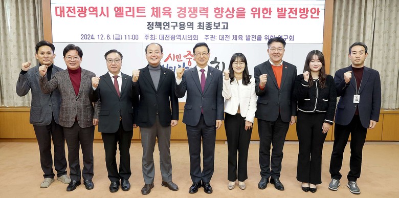 [대전 세계타임즈=이채봉 기자] 대전시의회 「대전 체육 발전을 위한 연구회」(회장 민경배 의원)는 6일 대전시의회 소통실에서 ‘대전광역시 엘리트체육 경쟁력 향상을 위한 발전 방안’ 연구용역 최종보고회를 개최했다.