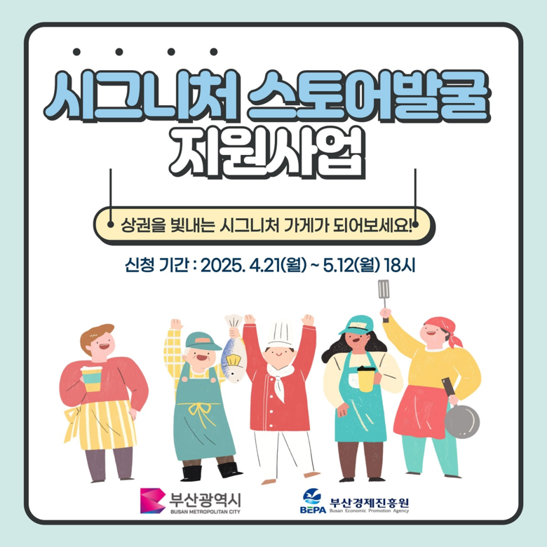 ◈ 사업 참여 희망 소상공인은 5.12. 18:00까지 시 소상공인종합지원센터 누리집(www.bsbsc.kr)을 통해 신청하면 돼 [부산 세계타임즈=이용우 기자] 부산시(시장 박형준)는 오늘(21일)부터 5월 12일까지 지역 대표 점포를 통해 매력적인 상권을 조성하는 「2025년도 시그니처스토어 발굴 및 지원사업」에 참여할 소상공인을 모집한다고 밝혔다.
