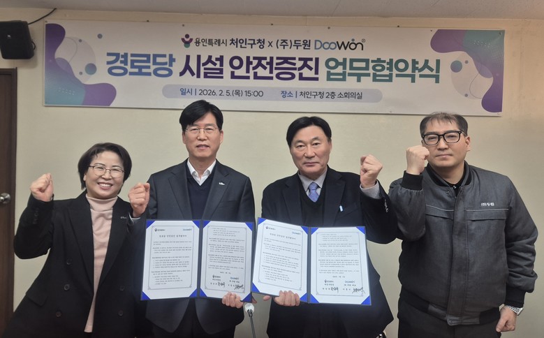 한상욱 처인구청장은 “이번 협약이 민·관 협력의 모범 사례가 되길 바라며, 점검을 통해 안전한 경로당 환경을 조성해 어르신이 건강한 여가를 즐길 수 있도록 노력하겠다”며 “기업이 가진 기술력을 활용한 ‘재능기부’에 나선 ㈜두원이 어르신의 안전을 지키는 든든한 버팀목이자 안전한 처인구를 위해 큰 역할을 해주기 바란다”고 말했다.