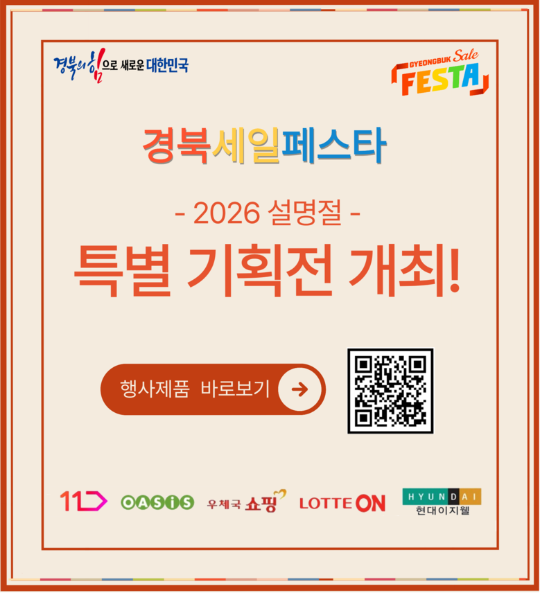 이재훈 경상북도 경제통상국장은“설 명절 장바구니 물가 부담이 큰 시기에 이번 경북세일페스타가 소비자들에게 실질적인 도움이 되길 기대한다”며, “경북의 정성이 담긴 선물세트를 저렴하게 구입할 좋은 기회를 놓치지 마시길 바란다”고 말했다.