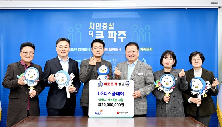 엘지(LG)디스플레이는 2010년부터 파주시 취약계층을 위한 후원금을 전달해 왔으며, 올해로 16년 연속 이어진 나눔으로 그 의미가 더욱 깊다.