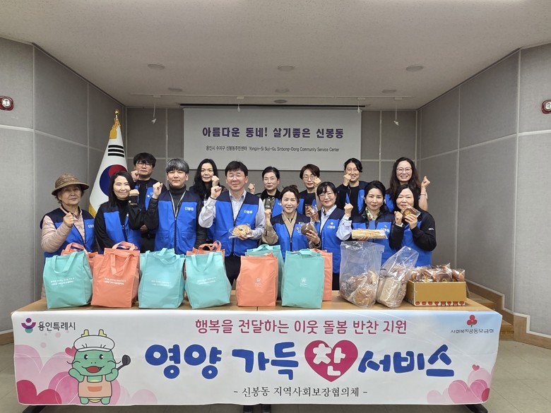 신봉동 지역사회보장협의체(민간위원장 김경순)는 27일 영양 취약계층의 건강한 식생활을 지원하고자 특화사업 ‘영양가득찬 서비스’를 시작했다. 협의체는 홀로 사는 어르신과 불편한 장애인을 위해 2022부터 매달 1회 반찬을 제공하는 특화사업을 추진하고 있다. 이날 위원들은 12가구를 방문해 반찬과 함께 성복동 소재 ‘㈜도마치111‘에서 기탁한 갓 구운 빵을 함께 전달했다. 전달받은 어르신은 “요즘 몸이 불편해서 반찬을 해 먹기가 어려운데, 맛있는 빵과 반찬을 가져다줘서 너무나 고맙다“고 감사를 표했다. 김 위원장은 “영양가득 찬 서비스는 단순한 반찬 지원을 넘어 이웃의 건강과 안부를 함께 살피는 의미 있는 사업”이라며 “홀로 끼니를 챙기기 어려운 분들이 든든하고, 영양이 가득한 한 끼 드실 수 있도록 12월까지 꾸준히 사업을 진행할 예정”이라고 말했다.