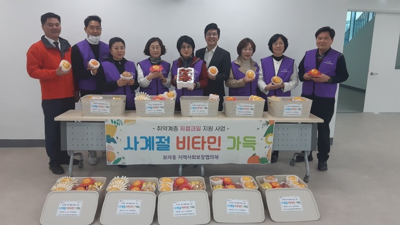 보라동 지역사회보장협의체(민간위원장 박명옥)는 27일 취약계층 25가구에 과일과 반찬을 전달했다. 이날 협의체 위원들은 지원 대상 가정을 방문해 딸기, 사과, 천혜향 등 과일 7종으로 이뤄진 과일상자 10상자와 반찬 15인분을 전달했다. 연말까지 주기적으로 취약계층에 제철 과일과 반찬을 전달하고, 안부 확인과 가정 내 환경미화 등 봉사활동을 할 예정이다. 박 위원장은 “최근 물가가 너무 올라 과일을 마음 놓고 살 수 없는 어려운 이웃이 많아 이번 사업을 추진했다”며 “대상자분들이 제철에 나는 과일을 맛있게 드시고 건강하시기를 기원한다”고 말했다.