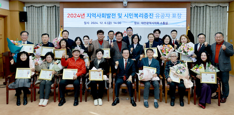 [대전 세계타임즈=이채봉 기자] 대전시의회 조원휘 의장은 6일 지역사회봉사 유공자 38인을 초청해 표창장을 수여했다.