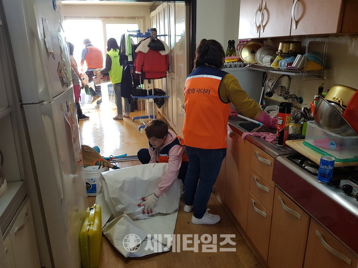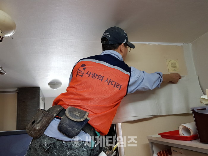 [대전=세계타임즈 이장성 기자] 사랑의 사다리 밴드(리더 이정제)와 동부교육지원청(교육장 최경노)은 13일 중구 중촌동 주공아파트에 거주하는 저소득층 초등학생 가정에서 도배 및 베란다 도색 봉사로 훈훈한 이웃사랑을 전했다.