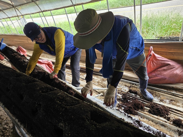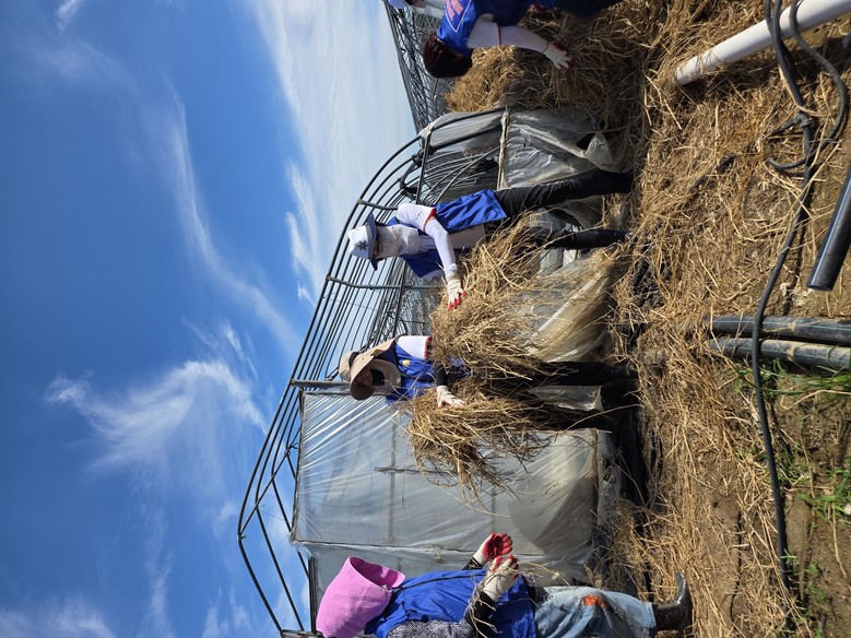 이들은 장화,장갑,모자,갈아입을 옷등을 챙겨 창원시자원봉사자들과함께 버스를 탑승해 산청 수해복구현장으로 달려갔다. 이날은 튿히 그늘 한곳없는 뙤약볓에 산청군의 침수 피해 비닐하우스에 이집 저집으로 나뉘어 작업을 시작했다.