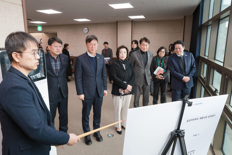 | ▲ 대야.삼성 지하차도 방음터널 우수사례 소개(왼쪽부터 안치권 의왕부시장, 이민근 안산시장, 신계용 과천시장, 하은호 군포시장, 최대호 안양시장) |
