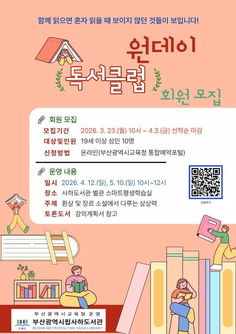 김정남 사하도서관장은 “이번 프로그램이 독서토론을 처음 접하는 시민들에게 부담 없이 참여할 수 있는 계기가 되고, 책을 매개로 다양한 생각을 나누는 소통의 장이 되길 바란다”고 전했다.