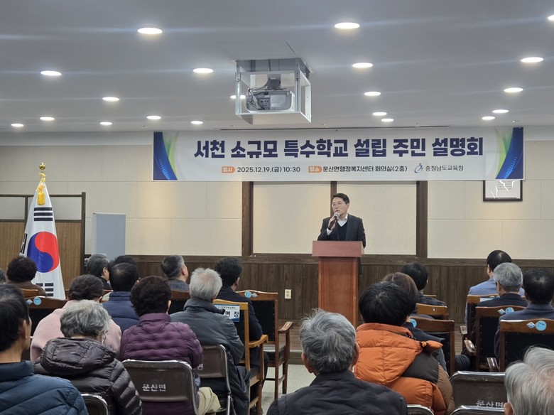 [충남 세계타임즈=이현진 기자] 충남교육청(교육감 김지철)은 19일(금), 서천군 문산면 행정복지센터에서 지역 주민과 보호자, 교육 관계자 등 약 60명이 참석한 가운데 ‘서천 소규모 특수학교’ 설립을 위한 주민설명회를 개최했다.