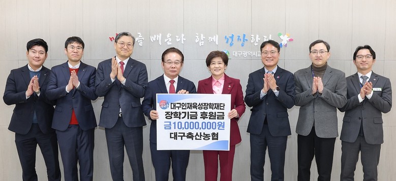 강은희 교육감은 “학생들이 꿈과 희망을 갖고 학업에 매진할 수 있도록 도움을 주신 대구축산농협 조합장님을 비롯한 직원 여러분께 감사드린다.”며 “기탁한 장학금을 잘 활용해 학생들이 미래 인재로 성장할 수 있도록 최선을 다하겠다.”라고 말했다.