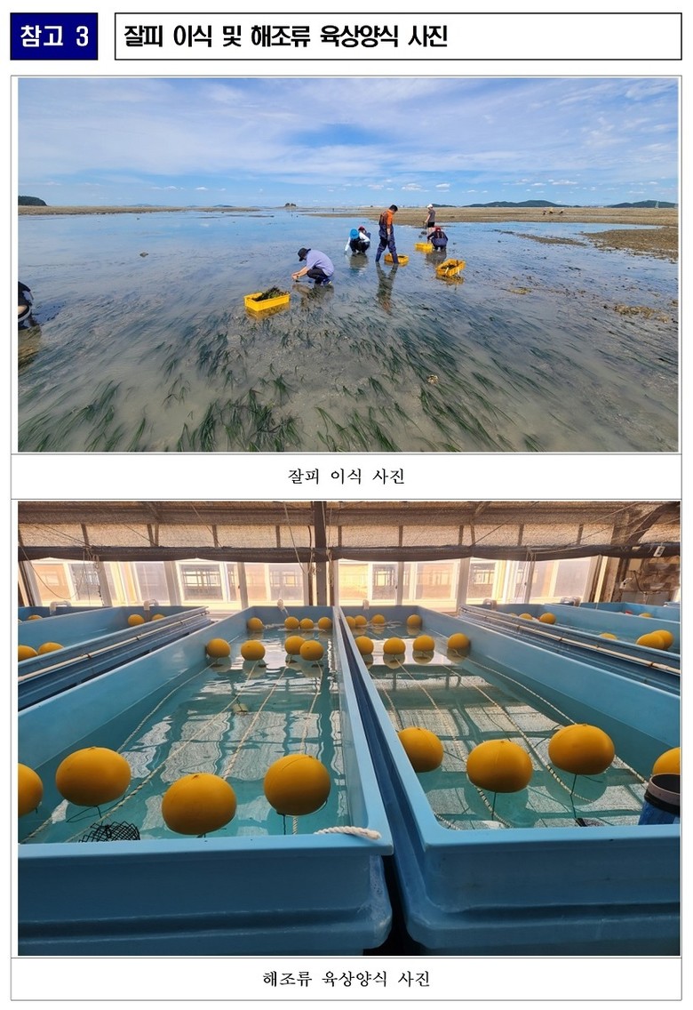 인천시 수산자원연구소에서는 이러한 기후변화 위기에 대한 선제적 대응을 위해 2005년부터 바다숲 조성을 위한 잘피 관련 연구를 진행해 왔으며, 2021년부터는 잘피와 염생식물 등을 시범 이식하고 탄소 저감방안에 관한 연구를 진행했다.