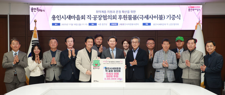 이상일 시장은 “용인특례시의 인구가 증가하면서 기초생활수급자 등 돌봐야 할 어려운 이웃들도 늘어나고 있는데 새마을 직ㆍ공장협의회가 지역 사회 소외계층을 위한 지원에 앞장서 주셔서 감사하다”며 “시장으로서 어려운 환경에 있는 시민들을 보살피고 지원하는 데 더욱 신경쓰겠다”고 했다.