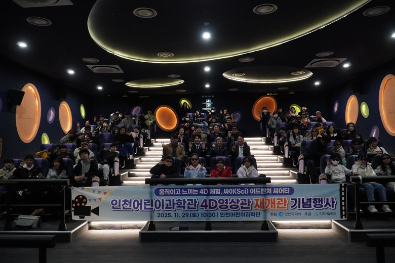 좌석 전면 교체와 4D 특수효과 추가를 통해 어린이들이 모험하듯 과학의 세계를 체험할 수 있는 공간으로 한층 확장됐다. 이번 개선은 연 평균 44만 명, 누적 580만 명이 방문한 인천의 대표 과학문화시설인 인천어린이과학관이 방문객들에게 더욱 안전하고 몰입감 있는 체험을 제공하기 위한 중요한 발판이 될 것으로 기대된다.