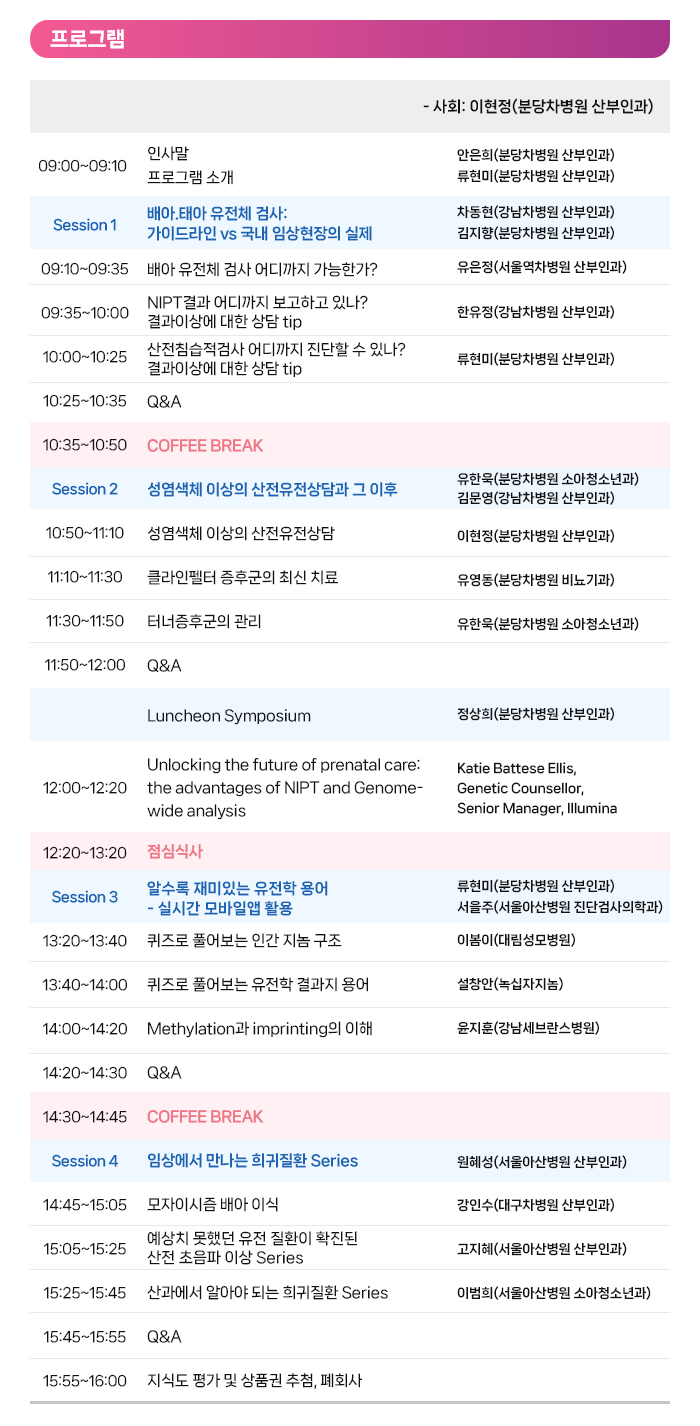 | ▲2024 산전유전상담 심포지엄 프로그램 안내문(사진제공=분당 차병원) |