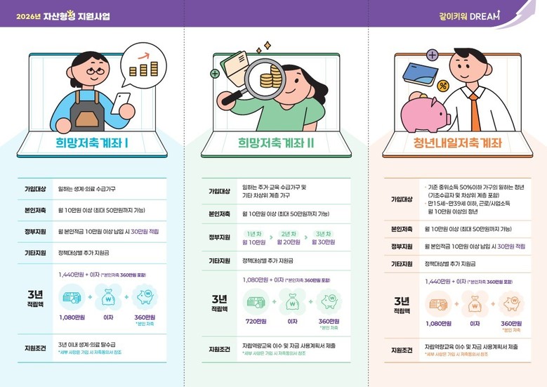 - 서울시 희망두배 청년통장‧꿈나래통장 등 자산형성 지원사업 운영 [영등포구 세계타임즈=이장성 기자] 영등포구(구청장 최호권)가 일하는 저소득 가구의 자립 기반 마련과 안정적인 자산 형성을 지원하기 위해 ‘희망저축계좌Ⅰ’ 신규 가입자를 모집한다고 밝혔다.