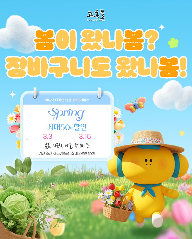 고흥몰 관계자는 “봄 제철 식재료는 영양과 맛이 가장 뛰어난 시기”라며 “이번 기획전을 통해 소비자들이 고흥의 신선한 먹거리를 보다 부담 없는 가격으로 경험하길 기대한다”고 말했다.