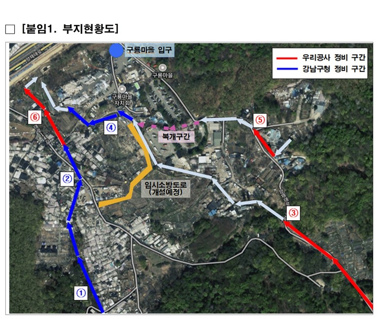 금년에는 이를 사전 예방하기 위해 서울주택도시개발공사(SH, 사장 황상하)와 강남구가 협업하여 6.28 부터 7.8 까지 13일간 벌개제근 및 예초작업 3,400m2, 개수로 준설 및 운반처리 620m3, 폐기물 50m3를 처리하였다.