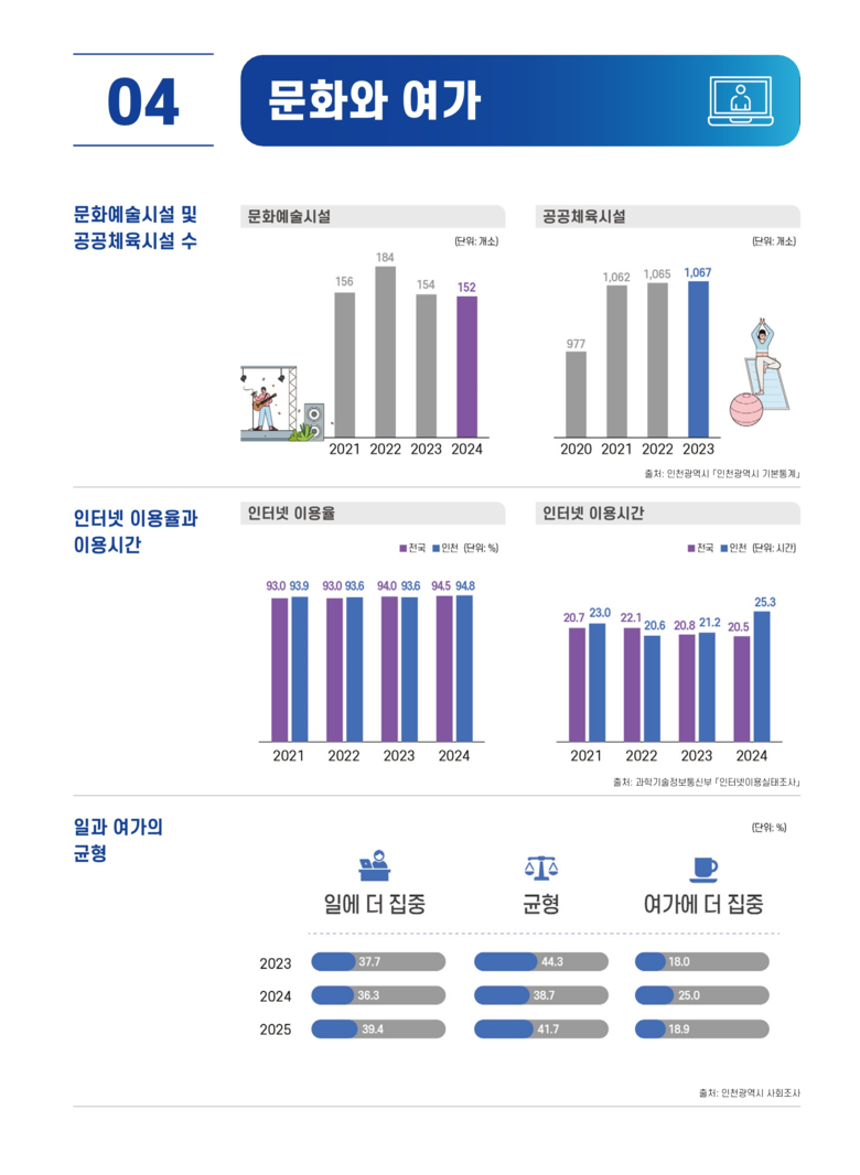 신승열 시 기획조정실장은 “이번 2025년 인천사회지표조사를 통해 시민의 삶의 만족도와 사회 전반의 체감 지표가 개선되고 있음을 확인할 수 있었다”며, “앞으로도 인천사회지표를 시민 중심 정책 수립을 위한 핵심 기초자료로 활용해 시민이 체감하는 변화를 만들어 나가겠다”라고 말했다.