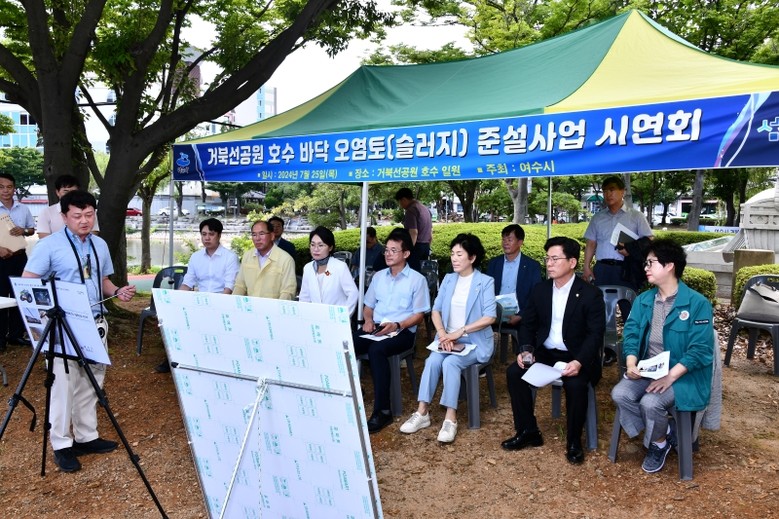 먼저 거북선공원 호수 정화를 위한 ‘오염토 준설 사업 시연회’에 참석하여 호수 수질 개선 방법에 대해 논의했다.