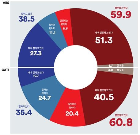 ARS 조사결과, 전 지역에서 대통령 ‘부정’평가가 ‘긍정’평가를 앞질러.