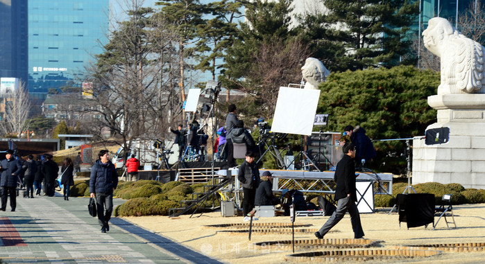 헌법재판소의 박근혜 대통령 탄핵심판의 날인 10일 오전 서울 여의도 국회에서 각 방송사가 탄핵 관련 생방송을 준비하고 있다. 2017.03.10.