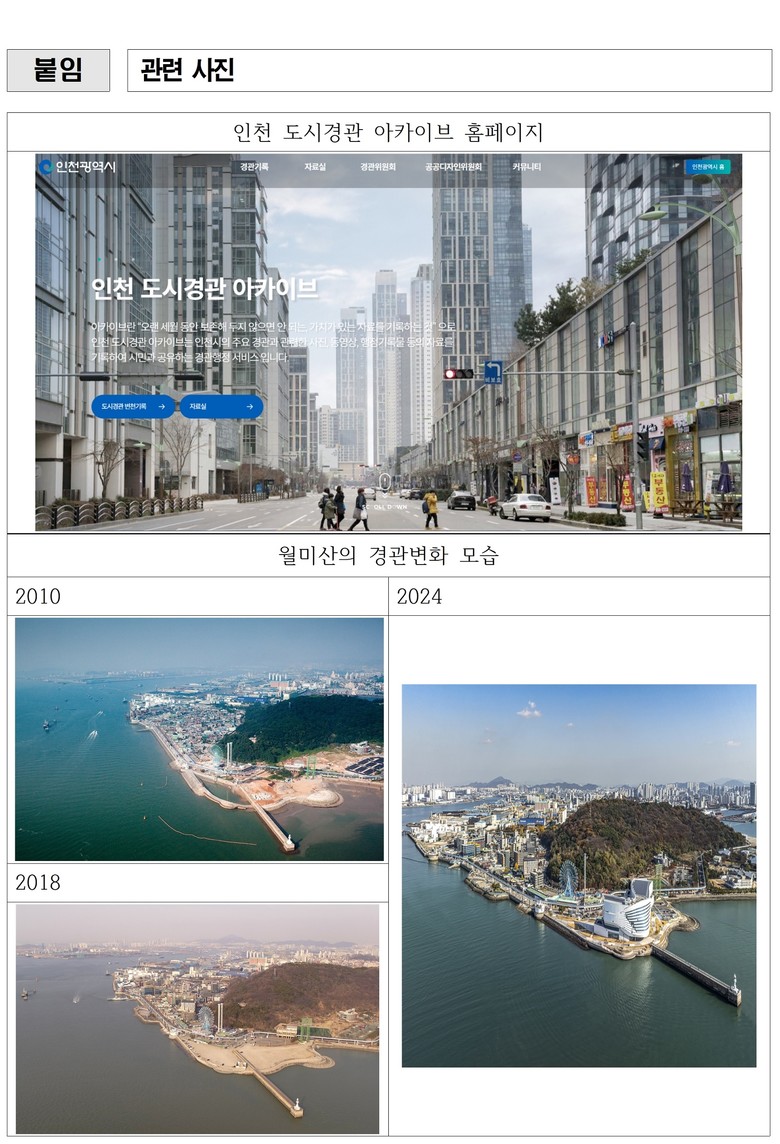 인천시는 지난 2008년부터 인천의 변화하는 도시 모습을 기록, 수집하고 데이터베이스를 구축하는 '경관기록화사업'을 꾸준히 추진해 왔다. 특히 올해 완료된 3차 사업에서는 경관기록과 함께 「인천 도시경관 아카이브 누리집」과 관리페이지 기능을 고도화하고 약 4개월간의 기능 개선과 안정화 및 시범 테스트를 거쳐, 새롭게 개선된 누리집이 마침내 공개되며 경관기록 화보집도 순차적으로 배포한다.