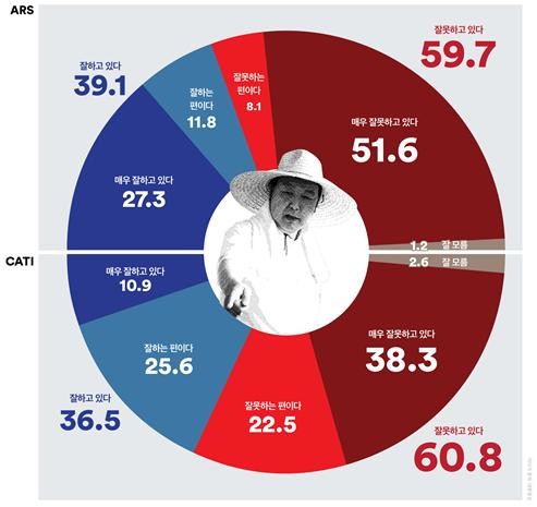 6월 3주차 대통령 국정운영 평가에서, ARS 조사 기준 국정운영 ‘긍정’ 평가는 지난주 대비 0.6%p 상승한 39.1%, ‘부정’ 평가는 0.2%p 하락한 59.7%를 기록했다.