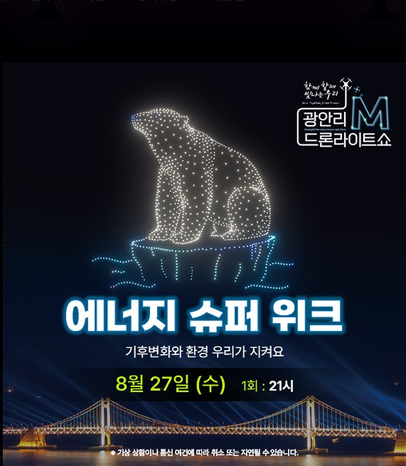 [광안리 엠(M) 드론 라이트쇼 특별공연] 27일 오후 9시 수영구 광안리 해변 일대에서 개최된다.