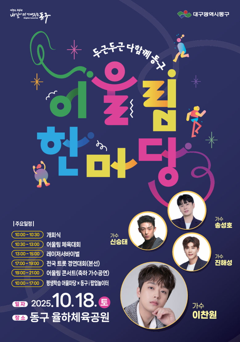 대구 동구청(구청장 윤석준)은 오는 18일, 율하체육공원 일원에서 2025년 어울림한마당 ‘두두다동’을 성대하게 개최한다고 밝혔다.