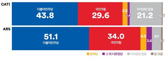 ARS, 국민의힘 올 해 들어 가장 낮은 지지율인 34.0% (양당 격차 17.1%p)