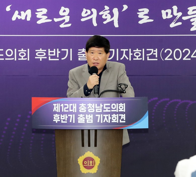 [충남 세계타임즈=백택기 기자] 충남도의회(의장 홍성현)는 11일 도의회 대회의실에서 제12대 후반기 의회 출범 기자회견을 열어 전반기 의정활동 성과를 소개하고, 후반기 의회 운영 방향 및 추진 과제를 설명했다. 새롭게 출범한 후반기 의회는 관행과 형식을 탈피한 민주적인 의회 운영을 통해 모범적인 의회를 구현하겠다고 약속했다.