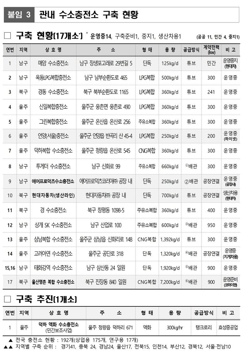 이 방식은 투게더 충전소, 에어프로덕츠 수소충전소, 상개에스케이(SK) 수소충전소, 태화강역 수소충전소에 이어 다섯 번째다.