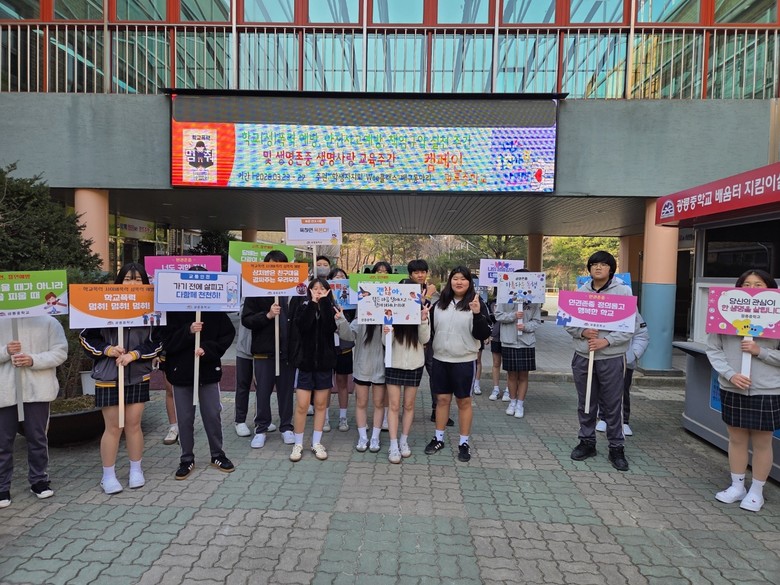 [남양주시 세계타임즈=송민수 기자] 광릉중학교(교장 민연식)가 신학기를 맞이하여 교육공동체가 함께 참여하는 활동형 주간 행사로 학생 주도와 참여형 학교(성)폭력ㆍ안전사고 예방 및 생명 존중 . 생명 사랑 주간(3.23.~3.27.) 프로그램을 운영하였다.