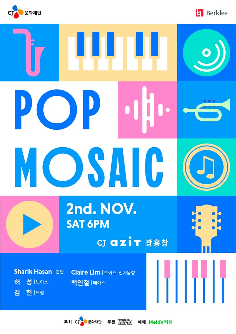 한편, ‘2024 CJ X 버클리 콘서트 - 팝 모자이크’ 공연 예매는 멜론 티켓에서 진행 중이며 초중고생 및 대학(원)생 대상으로 15% 할인을 제공한다.