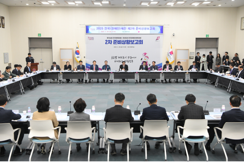 [부산 세계타임즈=이용우 기자] 부산시(시장 박형준)는 지난 3월 28일 시청 대회의실에서 2025년 '제106회 전국체육대회'와 '제45회 전국장애인체육대회'의 성공적 추진을 위한 준비 상황 보고회(이하 보고회)를 박 시장 주재로 개최했다고 밝혔다.