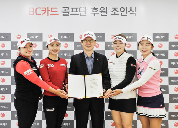 이번 협약식에는 서준희 BC카드 사장을 비롯해 프로골퍼 장하나(25), 김혜윤(28), 배소현(24), 김예진(22) 선수 및 관계자들이 참석한 가운데 진행됐다.