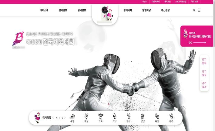 ◈ 시, 누리집을 통해 대회 정보뿐 아니라 맛집 등 관광 정보를 제공해 지역 경제에도 도움이 될 수 있도록 최선을 다할 예정 [부산 세계타임즈=이용우 기자] 부산시(시장 박형준)는 '제106회 전국체육대회'와 '제45회 전국장애인체육대회'의 성공 개최를 위한 공식 누리집(홈페이지)을 오늘(19일) 각각 오픈한다고 밝혔다.