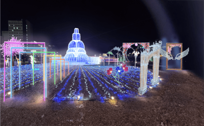 빛 조형물은 4.8m 높이 메인 조형물인 ‘리얼분수’와 아치터널, 대형 눈 결정, 날개 액자 등 있다. 포토존은 이를 중심으로 8곳에 마련됐다. 경기평화광장도서관 위 난간에도 고니 일루미와 스노우 폴이라는 이름의 빛 장식물이 설치된다.