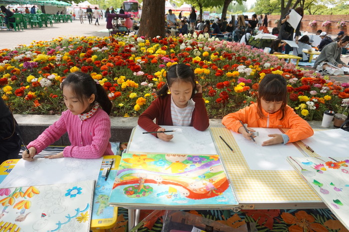 2018고양국제꽃박람회가 열리고 있는 고양시 호수공원에서는 어린이날인 5일 ‘꽃 그림 그리기 대회’가 열렸다. 꽃을 소재로 한 자유로운 그림을 그려보는 이번 대회에는 유치원, 초·중·고교생이 참가해 머릿속 꽃 이미지를 도화지에 옮겨 담았다. 2018고양국제꽃박람회는 오는 13일까지 개최된다.