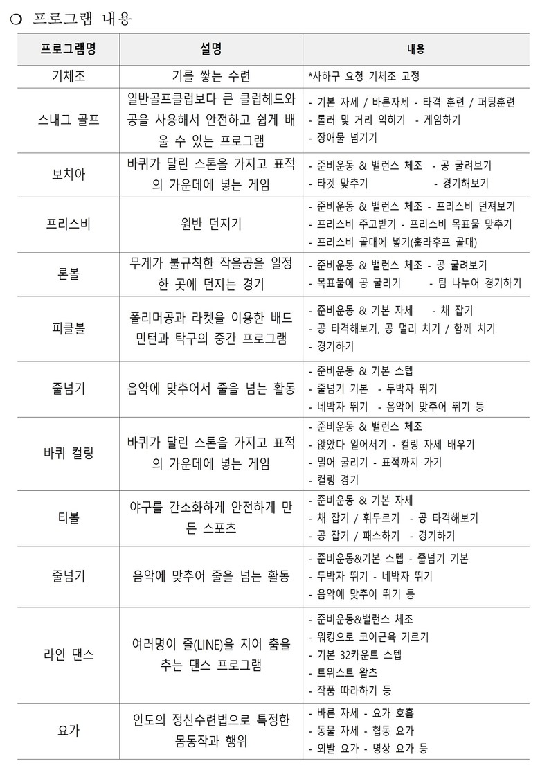 ㅇ 일 시 : 2025. 7. ~ 11. (생활체육 프로그램은 8월 제외)