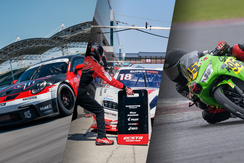 ‘포르쉐 카레라 컵 아시아’(왼쪽부터), 2023 CJ대한통운 슈퍼레이스 챔피언십 슈퍼 6000, 바이크 레이스 ‘가와사키 닌자 컵’.