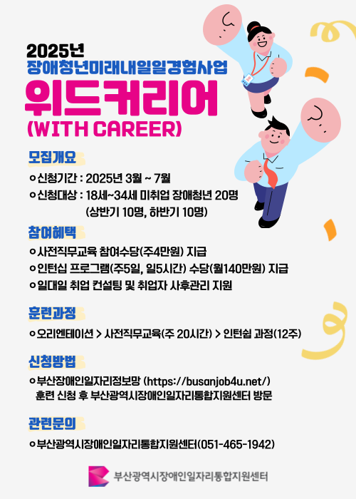 한편, 부산광역시장애인일자리통합지원센터는 일하려는 장애인을 위해 맞춤형 일자리를 발굴·연계하며, 지역사회 및 기업과 협력해 장애인 고용 확대에 힘쓰고 있다. 앞으로도 장애인과 기업을 연결하는 플랫폼 역할을 강화해 지속 가능한 일자리를 창출하고 모두가 함께 성장하는 사회를 만들어갈 예정이다.