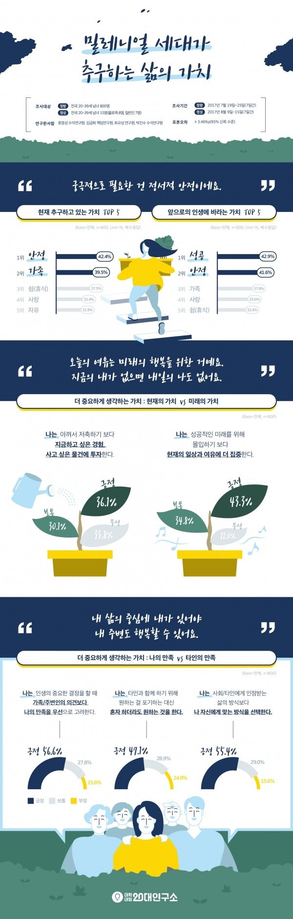 20대 후반 직장인 김 씨는 “어느 정도의 경제적 안정은 필요하지만 정말 나를 행복하게 하는 것은 가족, 친구와 같은 정서적 안정감을 유지해 주는 것”이라고 밝혔다.