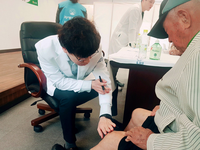 이날 창원자생한방병원 의료진과 봉사단 10여명은 고령 농업인을 비롯해 의료취약계층, 척추·관절 질환을 앓고 있는 지역민 등 200여명을 대상으로 한방진료를 실시했다. 현장에서는 어르신들에게 각종 척추·관절 질환에 대한 맞춤형 건강상담과 함께 침치료, 한방파스 처방도 함께 이뤄졌다. 특히 본격적인 농사철을 앞두고 전한 농번기 건강 관리 노하우는 큰 호응을 얻었다.