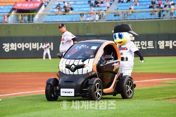 이날 박동훈 사장은 "르노삼성차가 여는 새로운 모빌리티의 출발을 부산 시민들과 함께 하고자 마운드에 올랐다"며 "사직구장의 즐거운 경기 관람과 발빠른 구단 운영을 도울 트위지를 시작으로 가장 기동성 좋고 안전한 이동수단을 필요로 하는 전국 고객들에게 금주부터 인도된다"고 말했다.