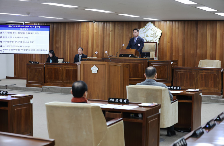 [계양구 세계타임즈=심하린 기자] 인천시 계양구 의회는 1월 23일부터 2월 7일까지 16일간의 일정으로 제247회 임시회를 열고 2024년도 새해 첫 의사일정에 들어갔다.