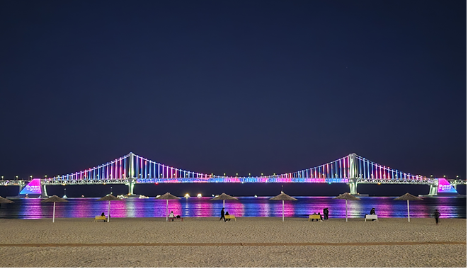 시는 광안대교의 등기구 개수 확충(7천11등→1만 3천465등), 조명 간격 축소(1m→0.5m)를 통해 경관조명의 메시지 전달력과 색감·해상도를 한층 높였다.